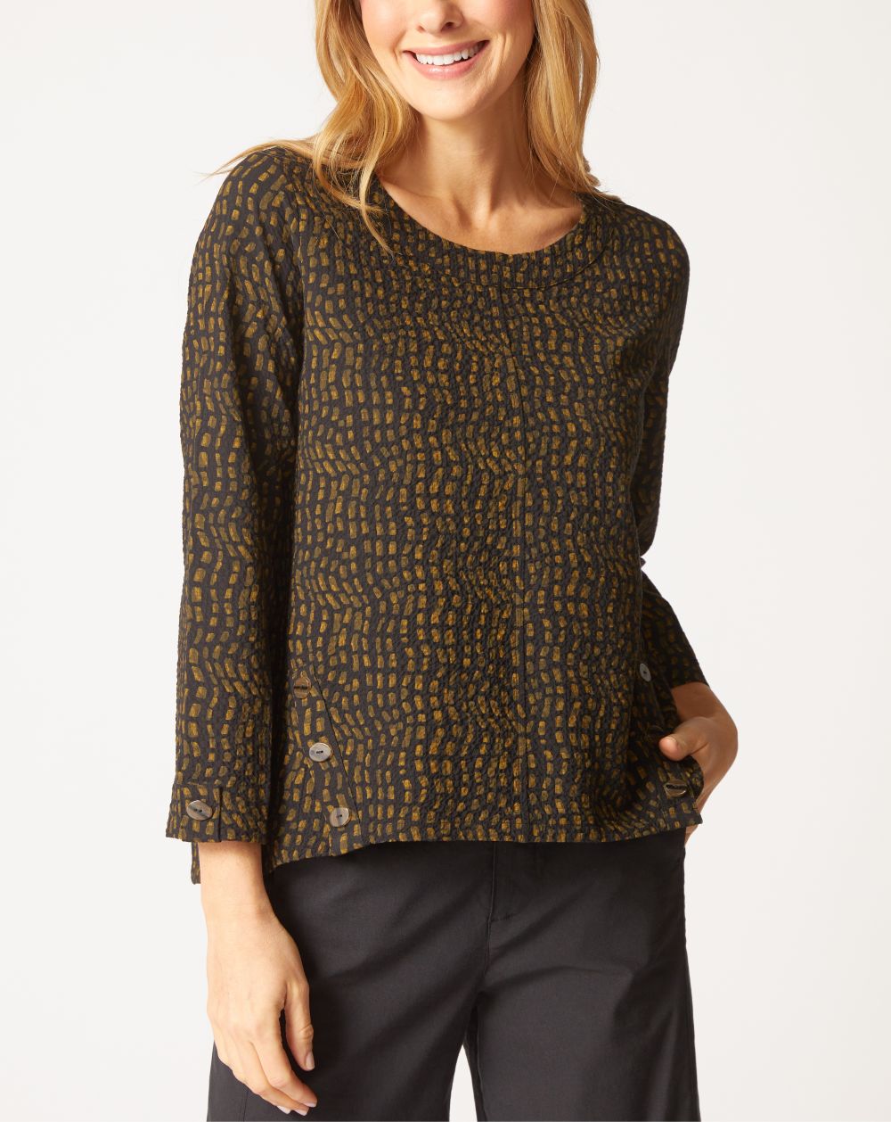 At Boutique Karma, we've carefully curated a catalog of beautifully designed and expertly manufactured apparel from the best brands in the business. Our collections feature a variety of comfortable and easy care specialty fabrics such as linen, silk, tencel, cotton & rayon.
