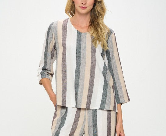 Focus Clothing - Stripe Linen Easy V FINAL SALE ITEM