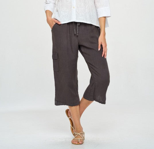 Focus Clothing - French Linen Cargo Capri FINAL SALE ITEM